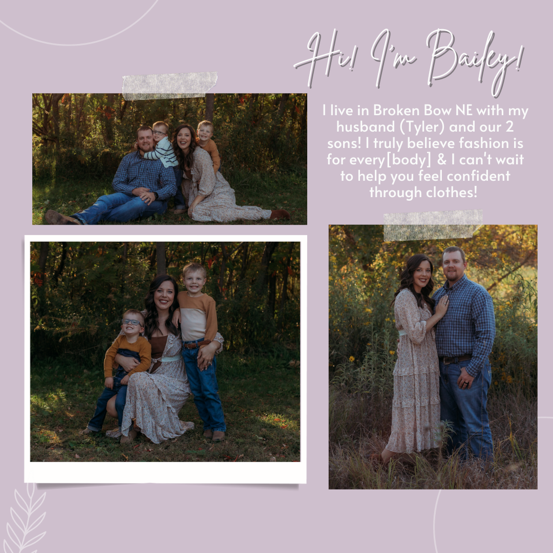 Bailey has always had a passion for not only fashion, but for helping women feel confident in the clothes they wear. She hand picks every piece we offer and only wants the very best to represented within her boutique. She also feels that every "body" is beautiful and therefore will always carry sizes Small-3XL!