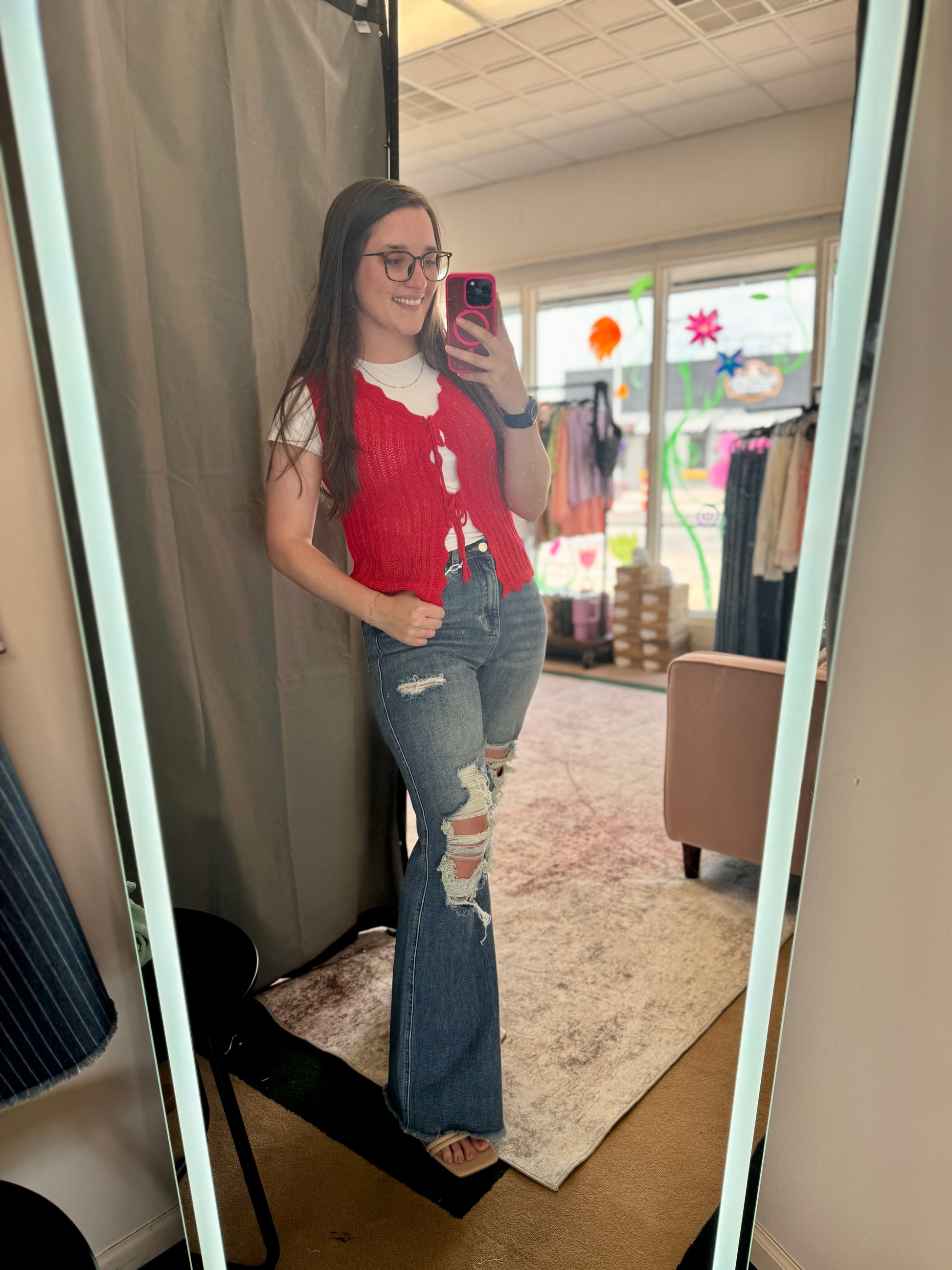 This playful knit sweater features a charming tie-front design and an open front, perfect for layering with your favorite outfits. Its soft fabric keeps you cozy while adding a flirty touch to your look. Ideal for casual days when you want to stay comfortable and stylish with ease.